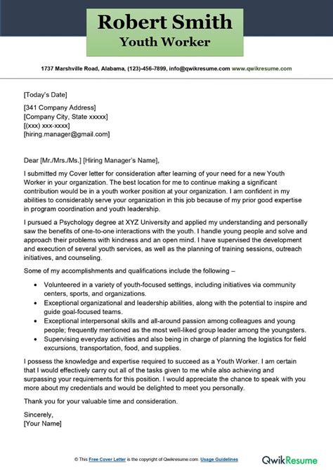 The cover letter plays a vital role in. In this article, we review how. Craft an exceptional youth worker cover letter with our online builder.